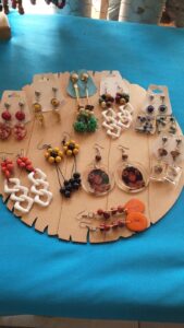 No início, utilizava miçangas e pérolas. Depois veio a ideia de fazer peças com tecidos e resinados. Posteriormente, surgiu a ideia de fazer as biojóias e descobri que assim como com as folhas e sementes, com o caule podemos fazer faz maravilhas também. Por isso, hoje, faço do meu trabalho de cada dia uma descoberta e uma terapia.